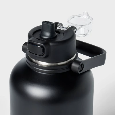 Stay hydrated during the day and throughout workouts with the 64-ounce water bottle. Made of stainless steel in a solid color, the insulated design keeps your drink cold, while the top handle offers convenient carrying. The removable straw and locking lid add extra functionality for on-the-go use.