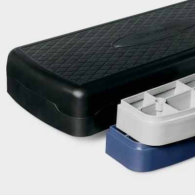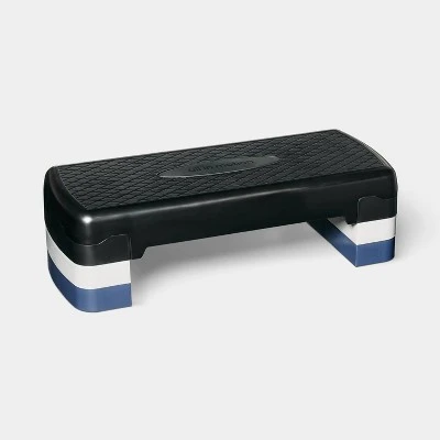 Step exercise deck designed with a wide platform for different cardio-based workouts. Features a diamond grove pattern on the surface. Adjustable design with two levels allows you to adjust the height as needed for different workouts. Weight capacity of up to 300 pounds.