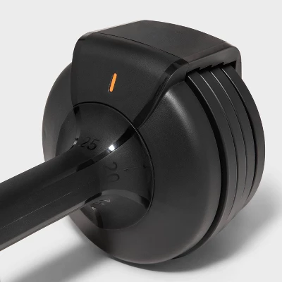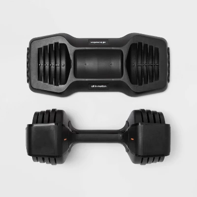 This 25lb adjustable dumbbell is designed to help you tone your upper body and build strength. Equipped with multiple weight options, this adjustable dumbbell is the perfect addition to your home gym. Best of all, the space-saving design with a dumbbell tray allows for convenient storage and carrying.