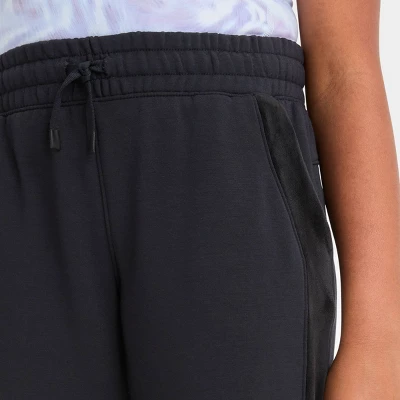 Solid-color cozy fleece pants with straight legs and a regular fit are made of a midweight, stretchy fabric blend for indoor and outdoor activities. Side pockets let them stash their small essentials. Elasticized waistband with a drawstring offers a customizable fit, and banded ankles help keep out the cold.