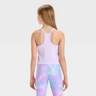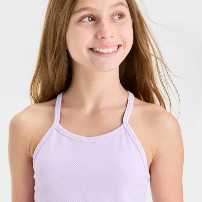 Seamless tank top in a solid hue with a ribbed texture, round neckline, racerback, cropped length and an athletic fit. Made from a midweight knit fabric blend of nylon and spandex for flexible wear that moves and stretches with your child. Pullover style completes the look and allows for easy on/off.