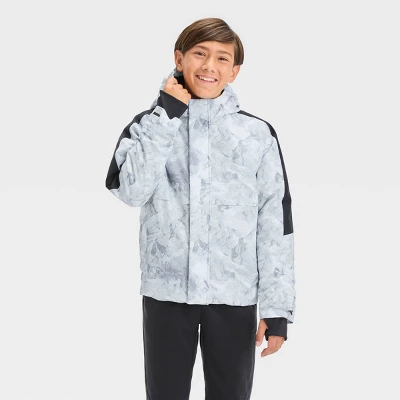 Hooded anorak jacket constructed from windproof and water-resistant breathable fabric protects them against wind, rain and cold weather. Includes attached mitten cuffs to keep their hands toasty and a front full-length zipper for easy on and off. Side pockets complete the functional design.