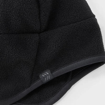 Beanie made of soft, midweight fleece with recycled polyester and spandex for warmth and comfort on cold-weather days. Pull-on style makes this black beanie easy to slip on and off. Ear flaps provide extra coverage to keep you cozy.