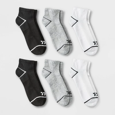 Designed for workouts, long commutes and everyday wear, these active socks are made from a soft cotton and recycled polyester blend with added spandex for reliable comfort and flexible movement. The pack includes 6 pairs of tagless socks in black, white and gray hues. The ankle height and solid colors make them easy to pair with a wide variety of activewear.