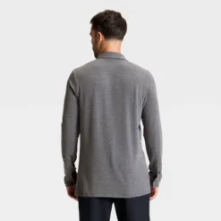 Knit commuter polo shirt in a solid shade with a full-button placket down the front and long sleeves with buttoned cuffs. Crafted from a midweight jersey fabric blend of recycled polyester, lyocell and spandex for flexible comfort that moves and stretches with you. Boasts moisture-wicking, quick-drying and odor-resistant properties to keep you feeling cool, fresh and dry during any activity. Tailored with a relaxed fit in an at-hip length for all-day comfortable wear.