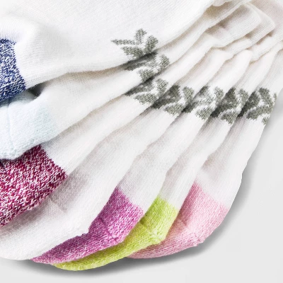 Ten-pair pack of athletic socks made from a moisture-wicking, midweight cotton blend with spandex and ventilating mesh helps keep your feet cool and comfy. Arch support as well as zone cushioning on areas of the feet that need it the most, a reinforced heel and toe, smooth toe seams and Y-heel stitching round out the adaptive fit. Plus, the white color with contrasting marl-finish heel and toe adds a touch of style to your feet, while the low-cut design makes them easy to wear with a variety of shoes.