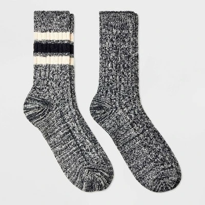 Two-pair pack of crew boot socks made from a moisture-wicking, lightweight, super-soft fabric with spandex helps keep your feet comfy wherever the day takes you. Arch support, reinforced heel and toe, and smooth toe seams provide an all-around comfortable fit. Plus, the classic cable-knit design and colorful stripes make them a stylish and comfortable option for wearing with any shoes.
