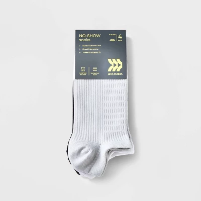 Four-pair pack of athletic socks made from a moisture-wicking, lightweight fabric with spandex and ventilating mesh helps keep your feet cool and comfy. Arch support, a reinforced heel and toe, and Y-heel stitching round out the comfortable fit. Colorblock patterns and logo designs add a touch of style, while the no-show height makes them easy to wear with a variety of shoes.
