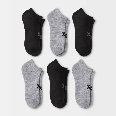 Low-cut athletic socks made from a moisture-wicking fabric with ventilating mesh help keep your feet cool and comfy during a range of athletic activities. The socks are thoughtfully created with arch support as well as zone cushioning on areas of the feet that need it the most, and smooth toe seams, a reinforced heel and toe, and Y-heel stitching complete the comfortable fit. Plus, the solid black and gray colors and low-cut design allow the rest of your athleisure look to take center stage while lending versatile wear.