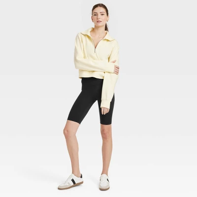 Dynamic flex black bike shorts are designed with a high-rise cut, compression fit and above-knee length. Made of a lightweight fabric blend of recycled polyester and spandex with flat seams for flexible wear that moves and stretches with you. Boast moisture-wicking and quick-drying properties along with a UPF 50+ rating to keep you feeling fresh, cool and dry while providing ample sun-smart protection. Sport an elasticized pull-on waistband for a secure fit and a hidden pocket for hands-free convenience.