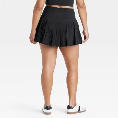 High-rise pleated skort is designed with built-in shorts for comfy wear while you work out or run errands. Crafted from midweight recycled polyester with spandex lining and four-way stretch for flexible comfort that moves with you. Boasts moisture-wicking and quick-drying properties as well as a UPF 50+ rating for enhanced comfort during any outdoor activity. Full elastic waistband helps keep them in place, while a hidden pocket adds functional detail.
