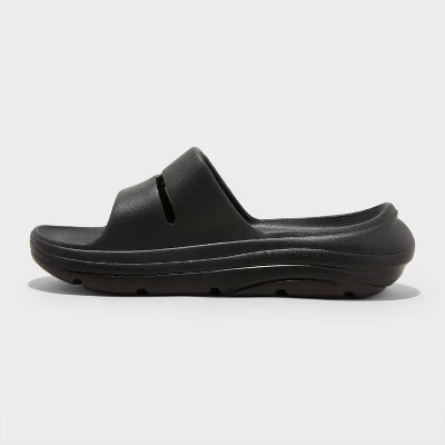 D-toe slide sandals in a medium width are great for everyday use. Designed with a contoured footbed and a 2.5-inch heel, these sandals help keep your feet comfortable. Plus, the slip-on style allows for easy on and off.